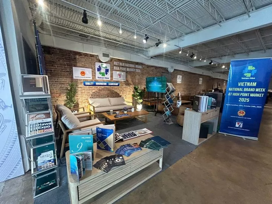 Tuần lễ Thương hiệu quốc gia Việt Nam tại Hội chợ triển lãm đồ gỗ và nội ngoại thất High Point Market 2025 đã giới thiệu các doanh nghiệp và sản phẩm đạt Thương hiệu quốc gia Việt Nam - đại diện cho ba giá trị cốt lõi: Chất lượng-Đổi mới, sáng tạo-Năng lực tiên phong.