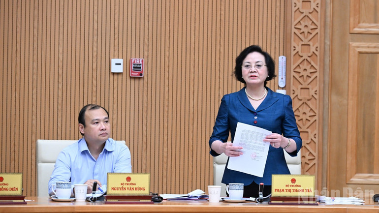 Bộ trưởng Nội vụ Phạm Thị Thanh Trà báo cáo tại phiên họp. (Ảnh: Trần Hải)
