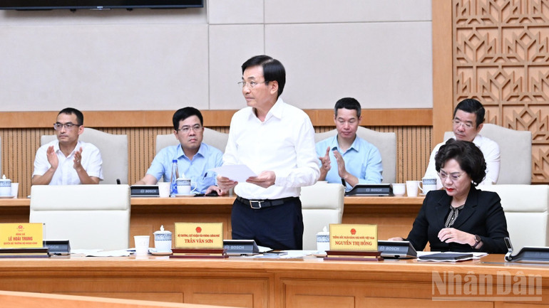 Bộ trưởng, Chủ nhiệm Văn phòng Chính phủ Trần Văn Sơn phát biểu ý kiến tại phiên họp. (Ảnh: Trần Hải)