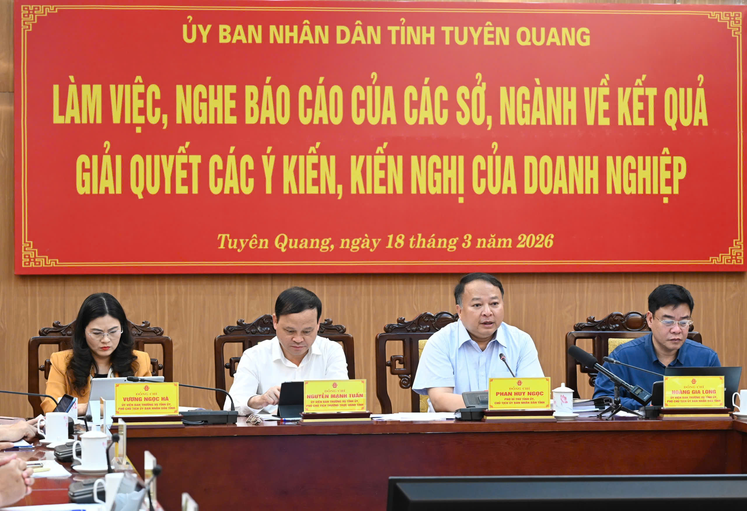 Đồng chủ trì có các đồng chí Ủy viên Ban Thường vụ Tỉnh ủy: Nguyễn Mạnh Tuấn, Phó Chủ tịch Thường trực UBND tỉnh; Hoàng Gia Long, Phó Chủ tịch UBND tỉnh; Vương Ngọc Hà, Phó Chủ tịch UBND tỉnh.