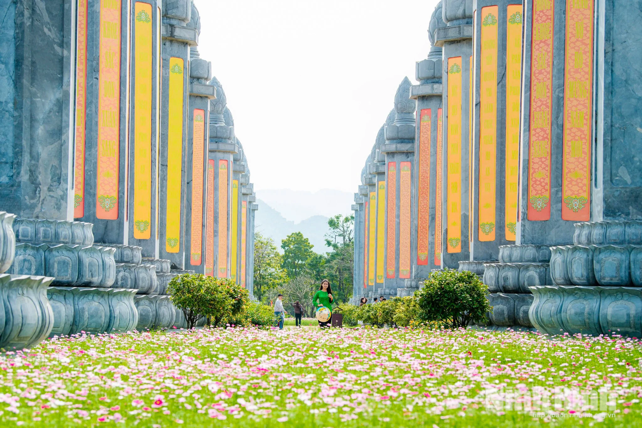 Vườn Cột Kinh tại Tam Chúc ngập tràn sắc hoa, thu hút đông đảo du khách đến vãng cảnh và trải nghiệm.