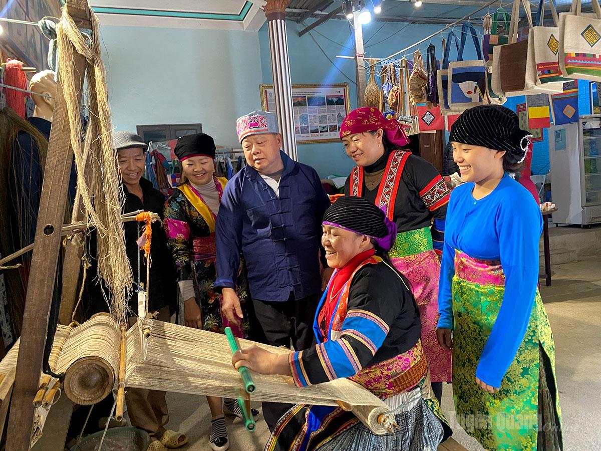 Đồng bào dân tộc Mông xã Mèo Vạc dệt thổ cẩm, gìn giữ nét đẹp văn hóa dân tộc.