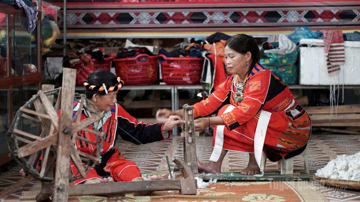 Phụ nữ Pà Thẻn xã Tân Trịnh cần mẫn bên khung cửi.