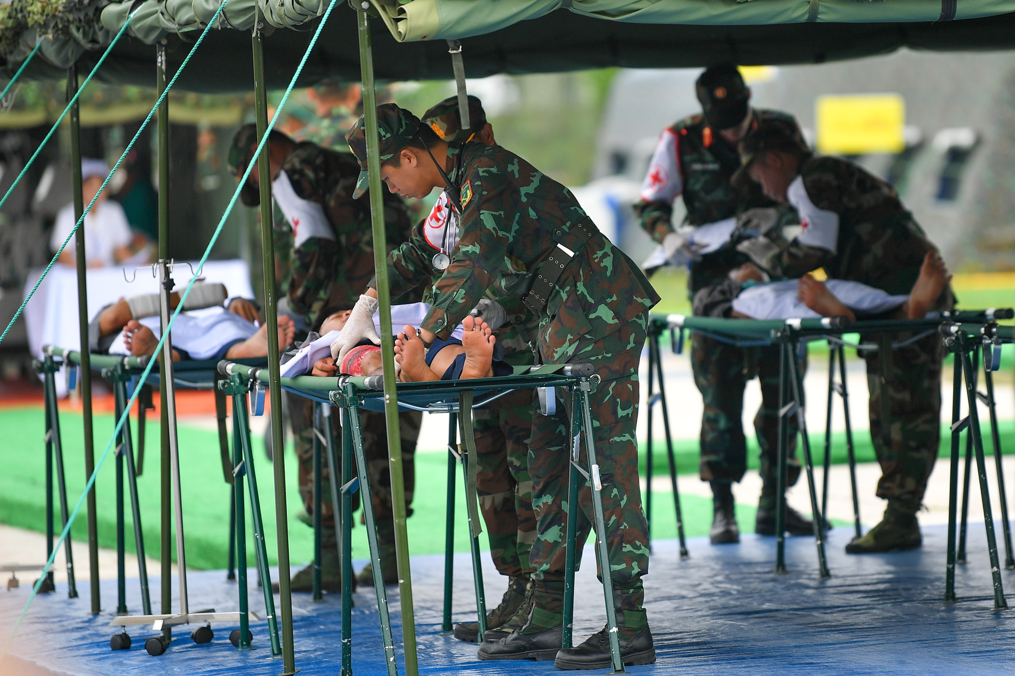 Trong khuôn khổ Tổng duyệt, hoạt động diễn tập chung Quân y hai nước đã được triển khai với đề mục