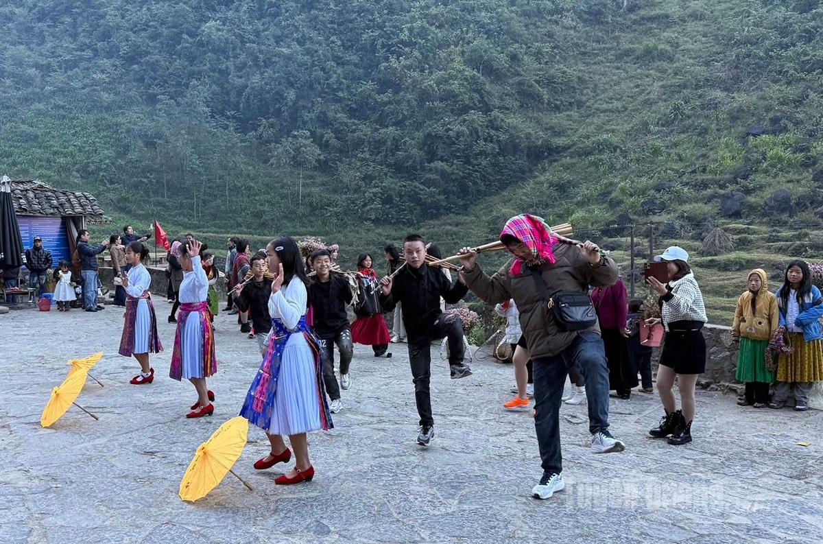 Tại xã Phố Bảng, nhiều hoạt động văn nghệ cũng được tổ chức tại khu vực dốc Thẩm Mã để du khách tham gia, trải nghiệm.
