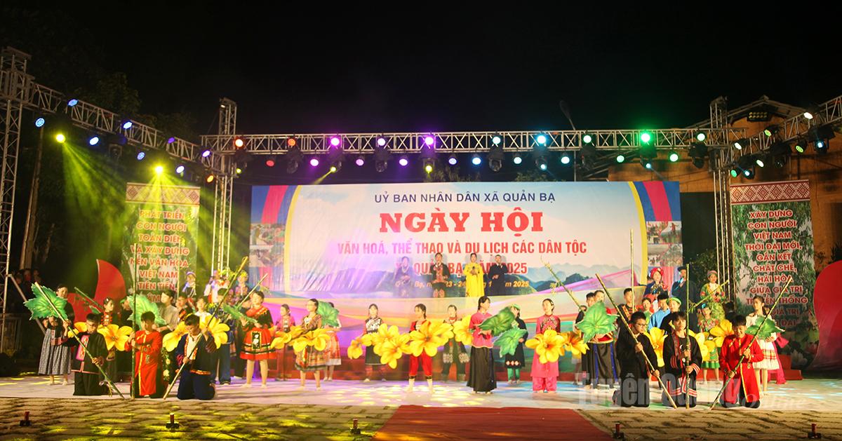 Ngày hội Văn hóa, thể thao và du lịch các dân tộc xã Quản Bạ khai mạc trong không khí sôi nổi, đa dạng sắc màu văn hoá. Mở đầu là chương trình nghệ thuật đặc sắc với chủ đề “Sắc mầu Quản Bạ” với sự tham gia của trên 200 nghệ nhân, diễn viên quần chúng địa phương biểu diễn, được dàn dựng công phu, hấp dẫn.