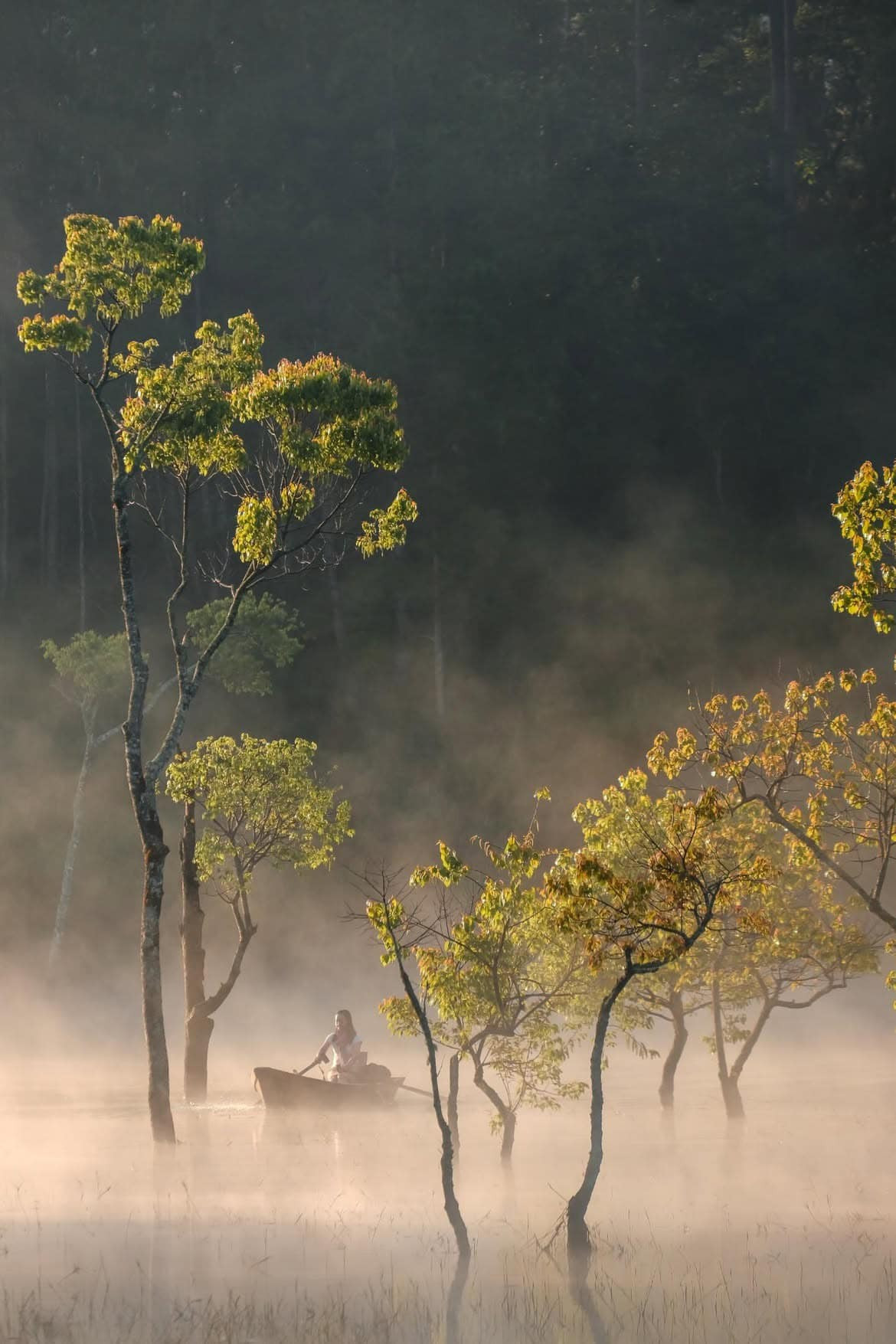 Khi sương mỏng bốc lên từ mặt hồ, khung cảnh Suối Tía trở thành “cõi thiên thai”,