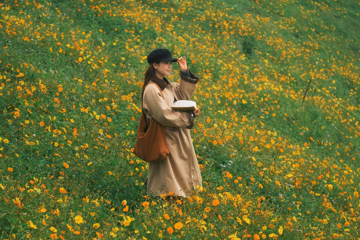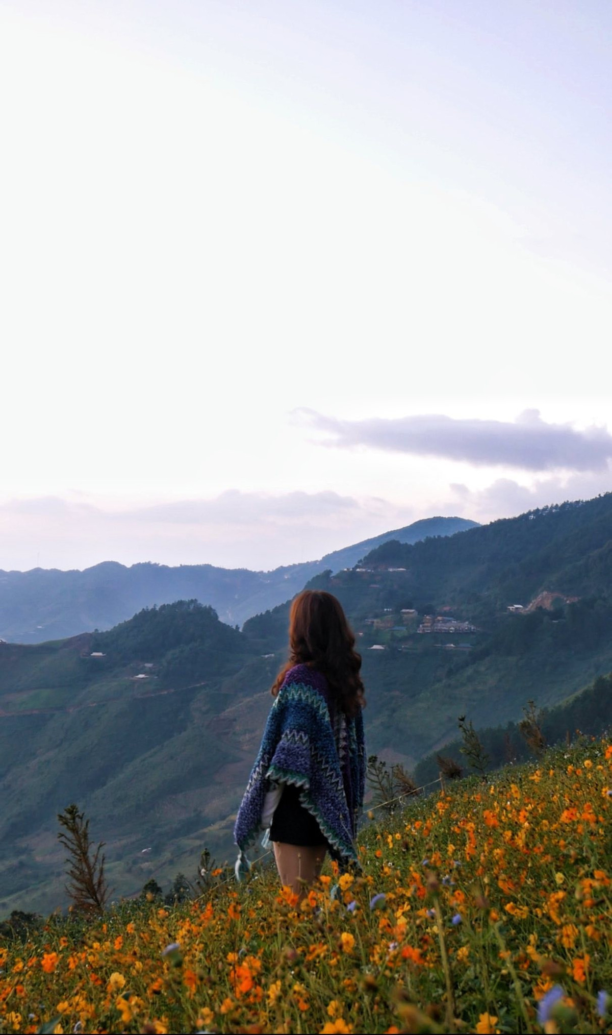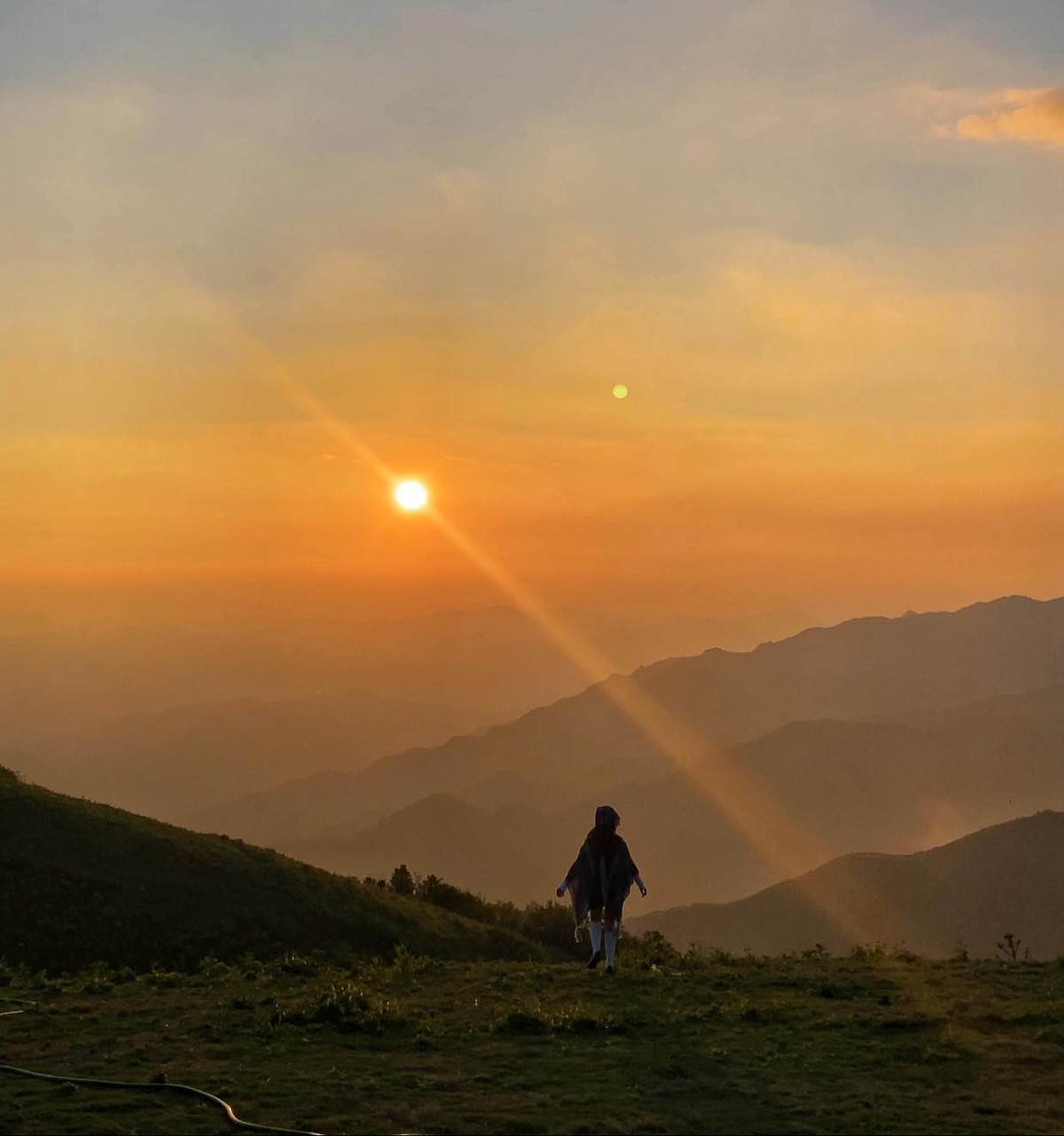 Ánh nắng cuối ngày nhuộm vàng sườn núi, mây khẽ trôi như dải lụa, và đâu đó tiếng gió thì thầm