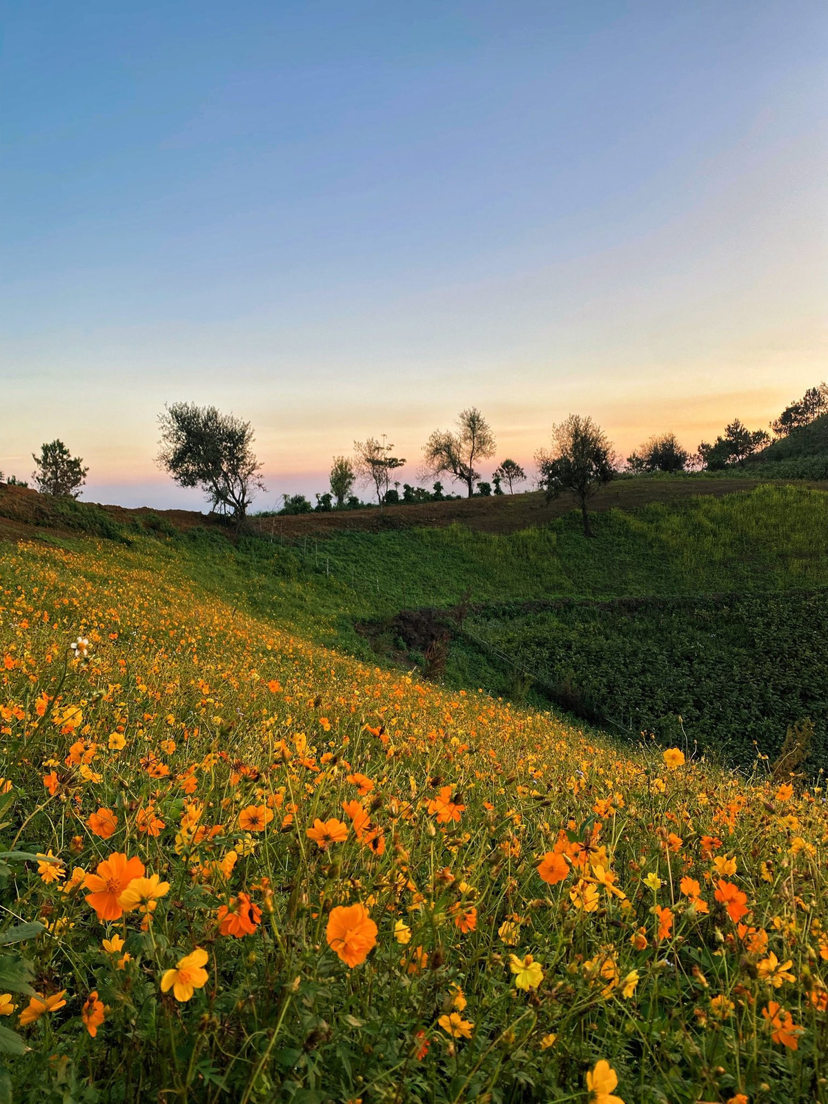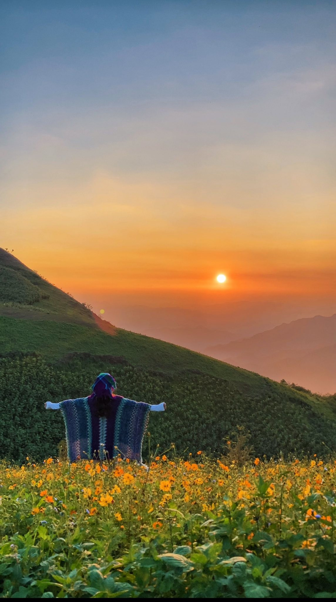 được ngắm nhìn vẻ đẹp thuần khiết của thiên nhiên – nơi hoàng hôn buông xuống, trên nền cỏ hoa,