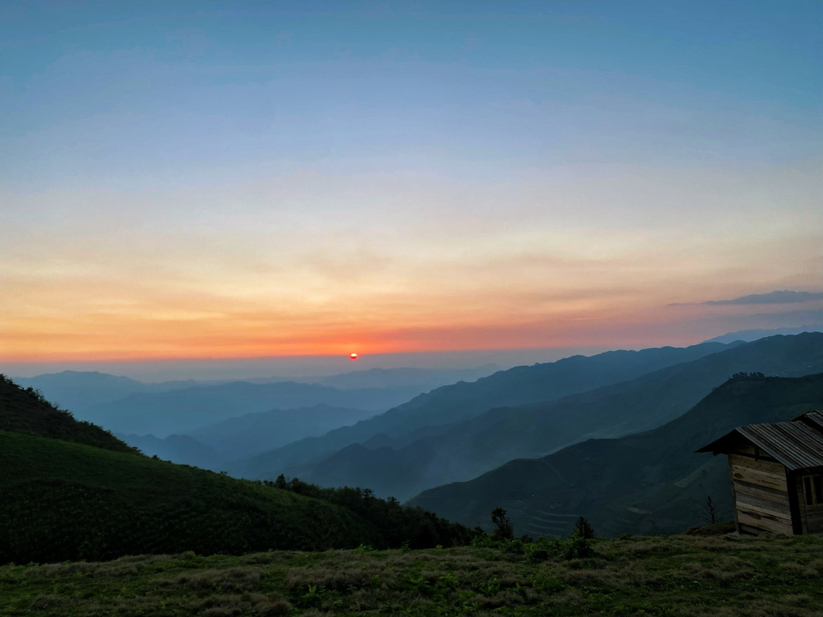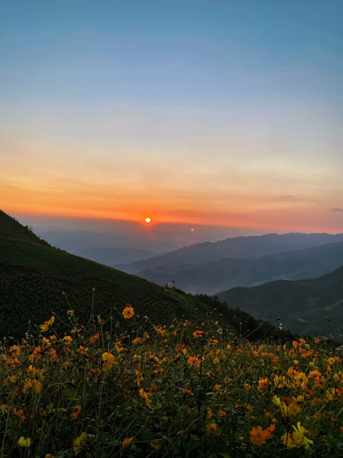 ngắm mặt trời lặn dần sau những dãy núi trùng điệp. Ảnh Diệp Hữu Đạt