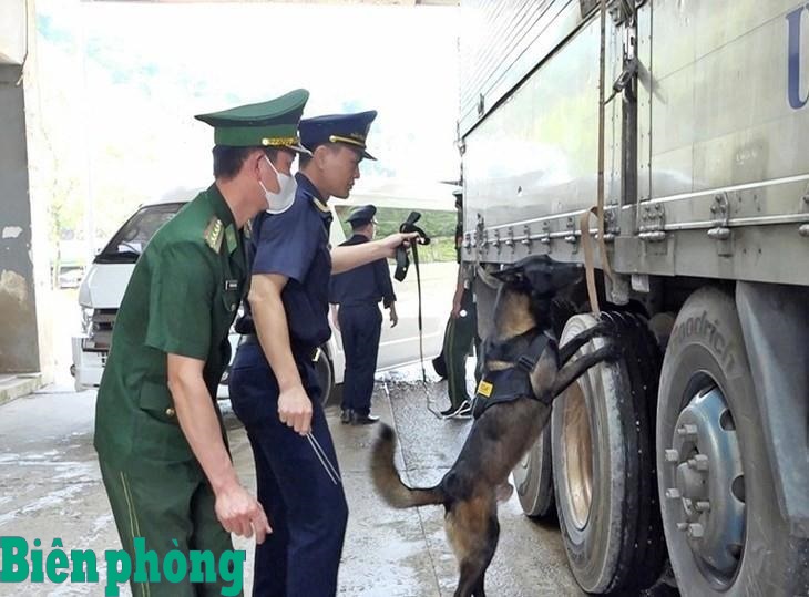 Lực lượng BĐBP và Hải quan tại cửa khẩu quốc tế Cầu Treo, BĐBP tỉnh Hà Tĩnh sử dụng chó nghiệp vụ