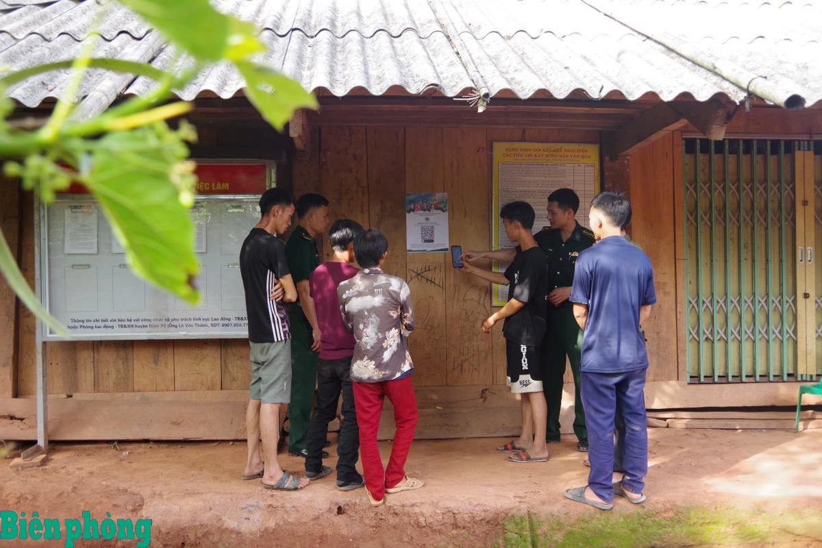 người dân biên giới cách sử dụng "Hòm thư điện tử tố giác tội phạm". Ảnh: Xuân Điềm