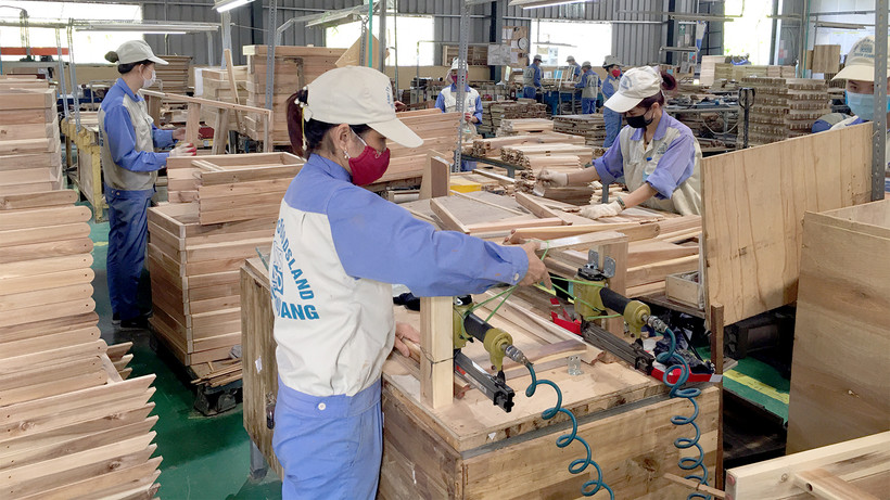 Công nhân Công ty cổ phần Woodsland Tuyên Quang sản xuất gỗ nội thất xuất khẩu.