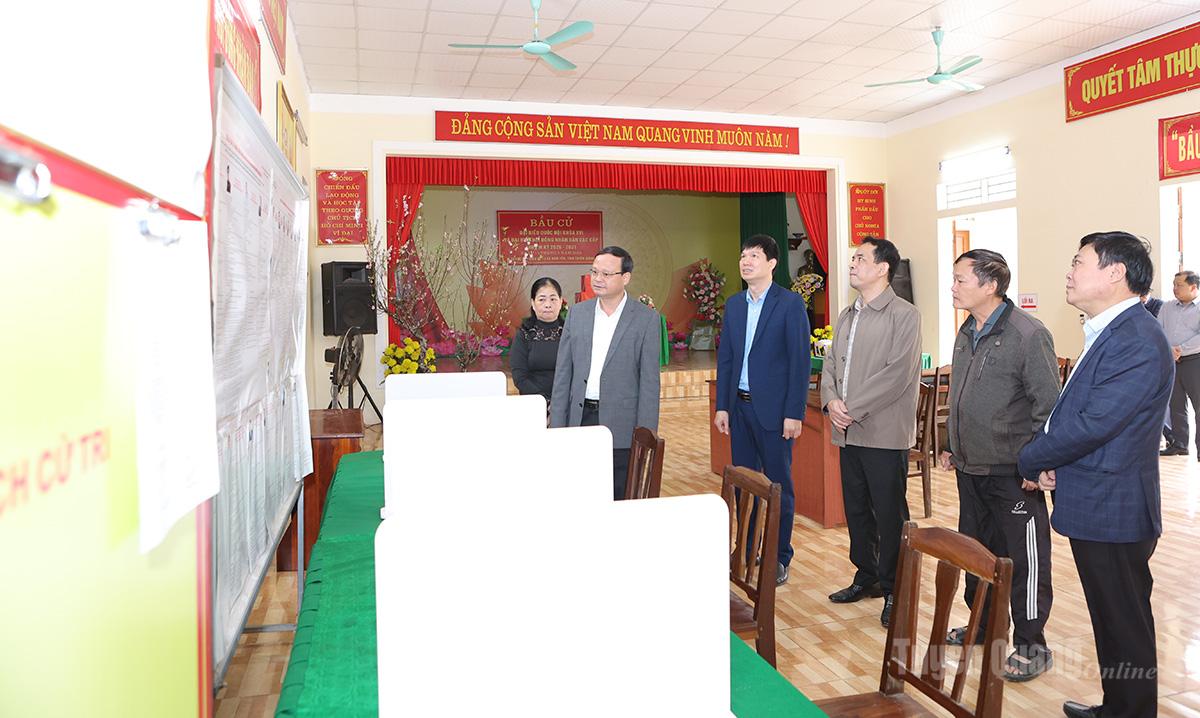 Đồng chí Nguyễn Mạnh Tuấn và đoàn công tác đã trực tiếp kiểm tra thực tế điều kiện cơ sở vật chất tại một số khu vực bỏ phiếu trên địa bàn xã Hàm Yên.