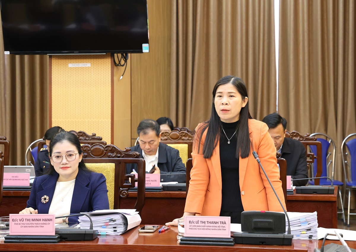 Đồng chí Phó Chủ tịch HĐND tỉnh Lê Thị Thanh Trà phát biểu tại phiên họp.