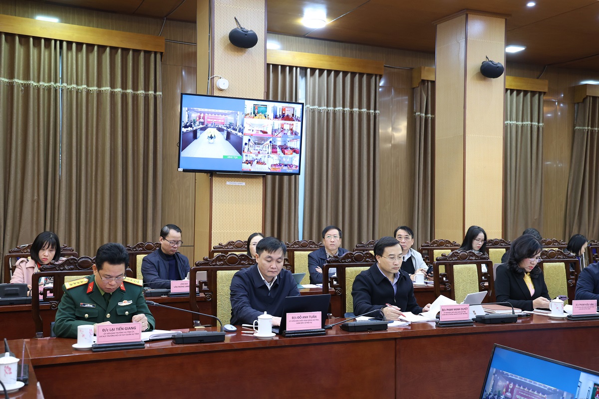 Phiên họp được kết nối trực tuyến đến điểm cầu các xã, phường trên địa bàn tỉnh.