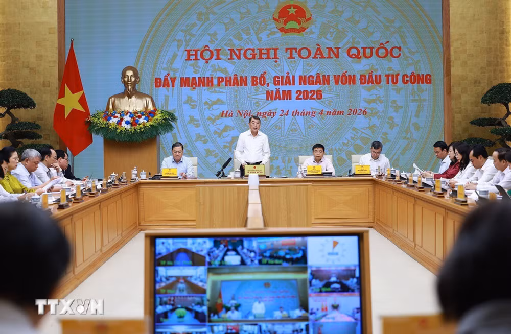 Sáng 24/4, Thủ tướng Chính phủ Lê Minh Hưng chủ trì Hội nghị toàn quốc về đẩy mạnh phân bổ, giải ngân vốn đầu tư công năm 2026. Phát biểu chỉ đạo, Thủ tướng Lê Minh Hưng yêu cầu chống đầu tư dàn trải, gắn với đánh giá hiệu quả kinh tế-xã hội của dự án; nâng cao trách nhiệm người đứng đầu để giải ngân đầu tư công đạt 100% kế hoạch, góp phần thực hiện mục tiêu tăng trưởng 2 con số.