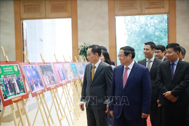 Thủ tướng Phạm Minh Chính tham quan Triển lãm ảnh về thành tựu ngoại giao. Ảnh: Dương Giang/TTXVN