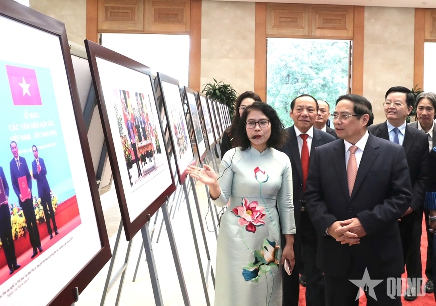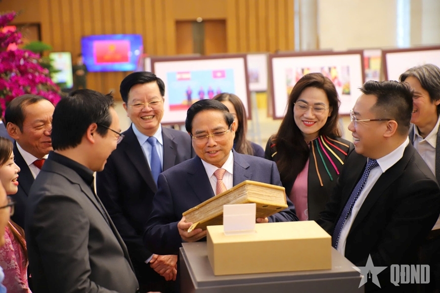 Thủ tướng và các đại biểu tham quan khu vực trưng bày các thành tựu của ngành VHTTDL