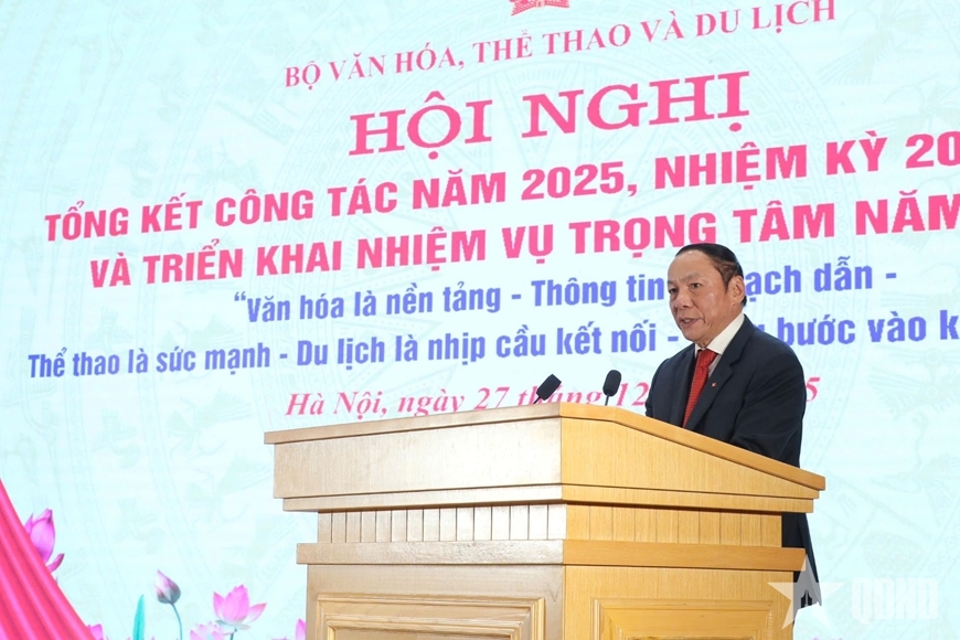 Phát biểu tại Hội nghị, Bộ trưởng Bộ VHTTDL Nguyễn Văn Hùng nêu rõ, năm 2025 được đánh giá là năm bản lề với những quyết sách lịch sử. Toàn ngành ban hành gần 130 văn bản quy phạm pháp luật (chiếm 30% tổng số văn bản của ngành), tháo gỡ triệt để các “điểm nghẽn”.