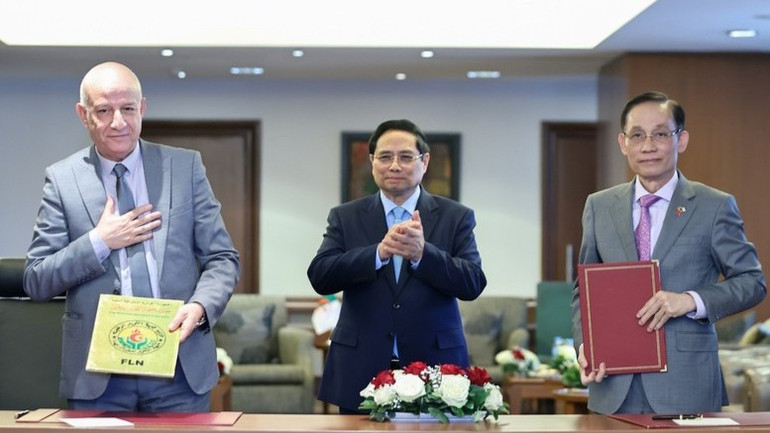 Nhân dịp này, Thủ tướng Chính phủ Phạm Minh Chính và Tổng Bí thư Đảng FLN chứng kiến lễ ký và trao Thỏa thuận hợp tác giữa Đảng Cộng sản Việt Nam và Đảng FLN.