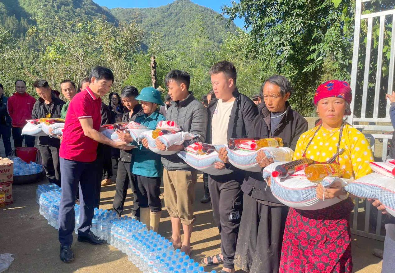 Đại diện Hiệp hội Doanh nghiệp tỉnh trao các suất quà hỗ trợ người dân bị ảnh hưởng do bão số 10 tại xã Lũng Cú.