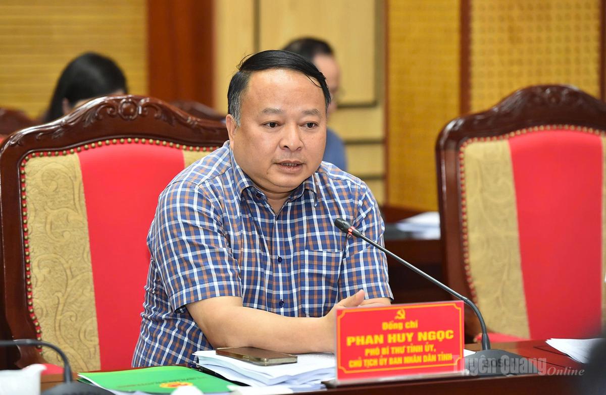 Đồng chí Chủ tịch UBND tỉnh Phan Huy Ngọc cho ý kiến tại cuộc họp.