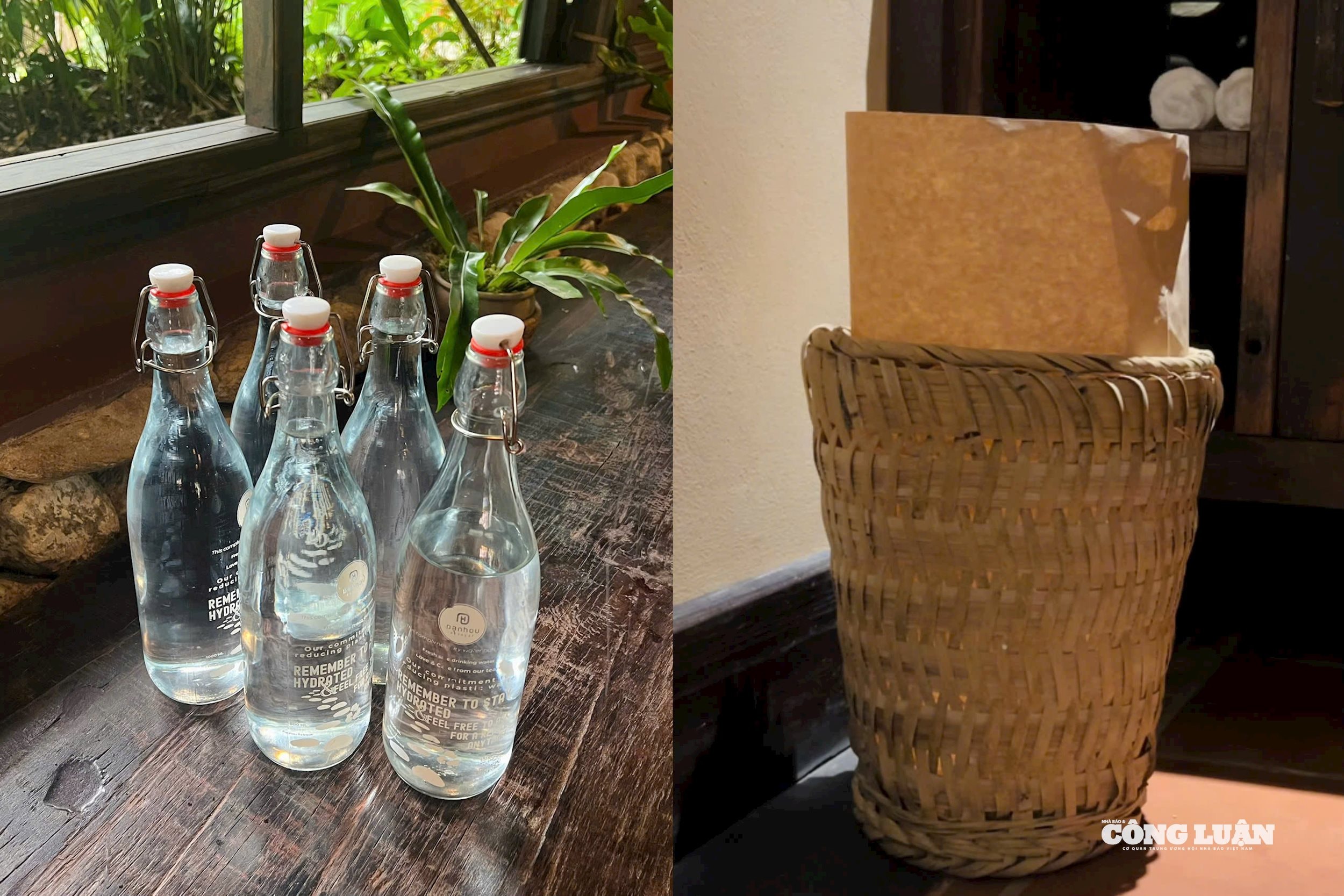 Ở đây, mọi thứ đều “xanh” đúng nghĩa – nước đựng trong chai thủy tinh, túi giấy đựng rác, đồ decor bằng tre, nứa, gỗ, những mái bungalow ẩn mình giữa tán cây. Không chi tiết nào là ngẫu nhiên – mỗi thứ đều thể hiện sự tôn trọng thiên nhiên.