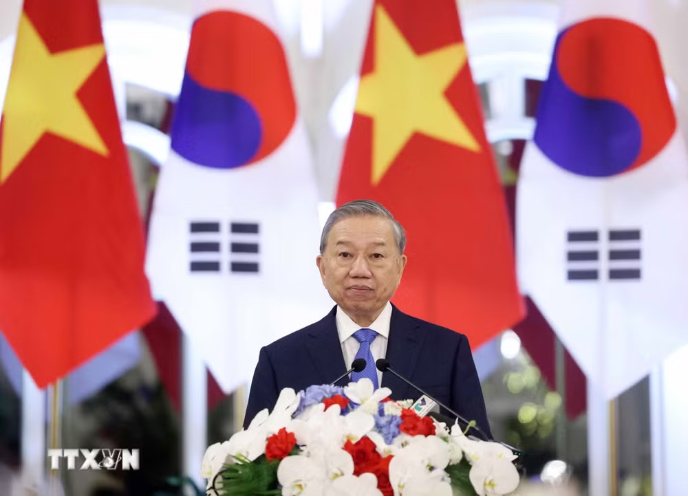 Tổng Bí thư, Chủ tịch nước Tô Lâm nhấn mạnh mối quan hệ giữa Việt Nam và Hàn Quốc là mối quan hệ đan xen dựa trên sự tương đồng về lịch sử-văn hóa và sự hài hòa về lợi ích chiến lược trong thời đại mới. Kể từ khi thiết lập quan hệ ngoại giao, trong hơn 30 năm qua, quan hệ hai nước đã có những bước phát triển vượt bậc, đạt đến mức độ tin cậy chính trị cao và ngày càng thực chất hơn, đã phát triển thành quan hệ Đối tác chiến lược toàn diện trên cơ sở hợp tác hiệu quả.