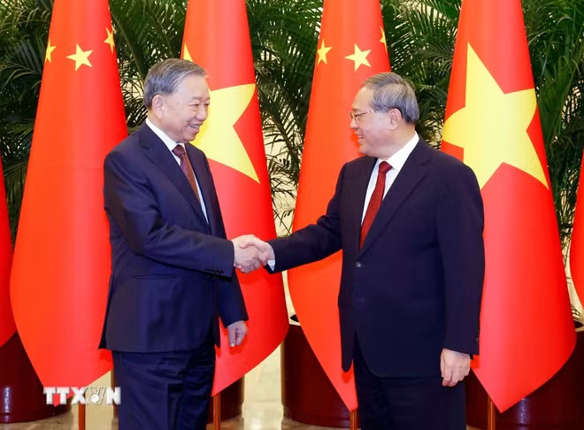 Tổng Bí thư, Chủ tịch nước Tô Lâm hội kiến Thủ tướng Trung Quốc Lý Cường. (Ảnh: Thống Nhất/TTXVN)
