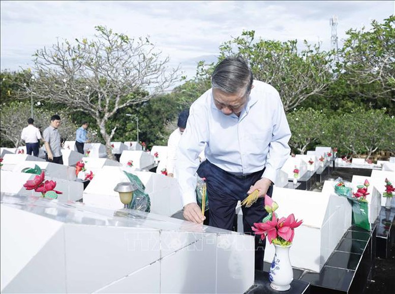 Tổng Bí thư Tô Lâm dâng hương tại Nghĩa trang liệt sĩ Phú Quốc - Ảnh: TTXVN