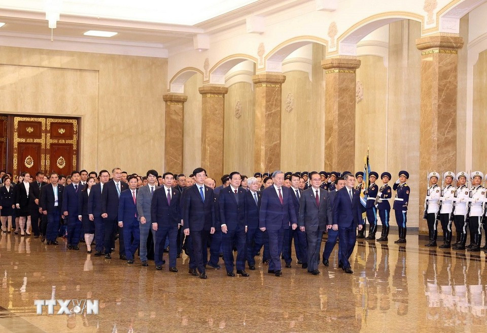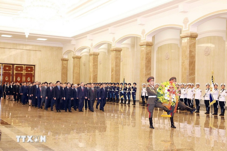 Tổng Bí thư Tô Lâm cùng Đoàn đại biểu cấp cao Việt Nam đến đặt hoa tưởng nhớ Chủ tịch Kim Nhật Thành,