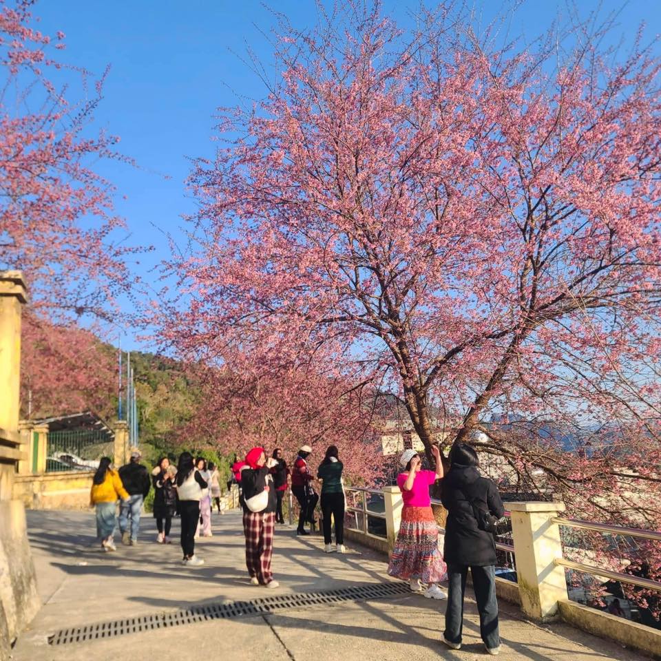Hiện tại, nơi đây đang vào mùa hoa anh đào và hoa tam giác mạch, thu hút đông đảo du khách nước ngoài và các bạn trẻ đến trải nghiệm, chụp ảnh check-in. Những sắc hoa hồng rực rỡ phủ khắp triền núi, thung lũng và các con đường uốn lượn, tạo nên bức tranh thiên nhiên thơ mộng, lãng mạn. Khung cảnh ấy không chỉ mang lại cảm giác trong lành, dễ chịu mà còn trở thành điểm hẹn lý tưởng của những người yêu thiên nhiên và nhiếp ảnh.