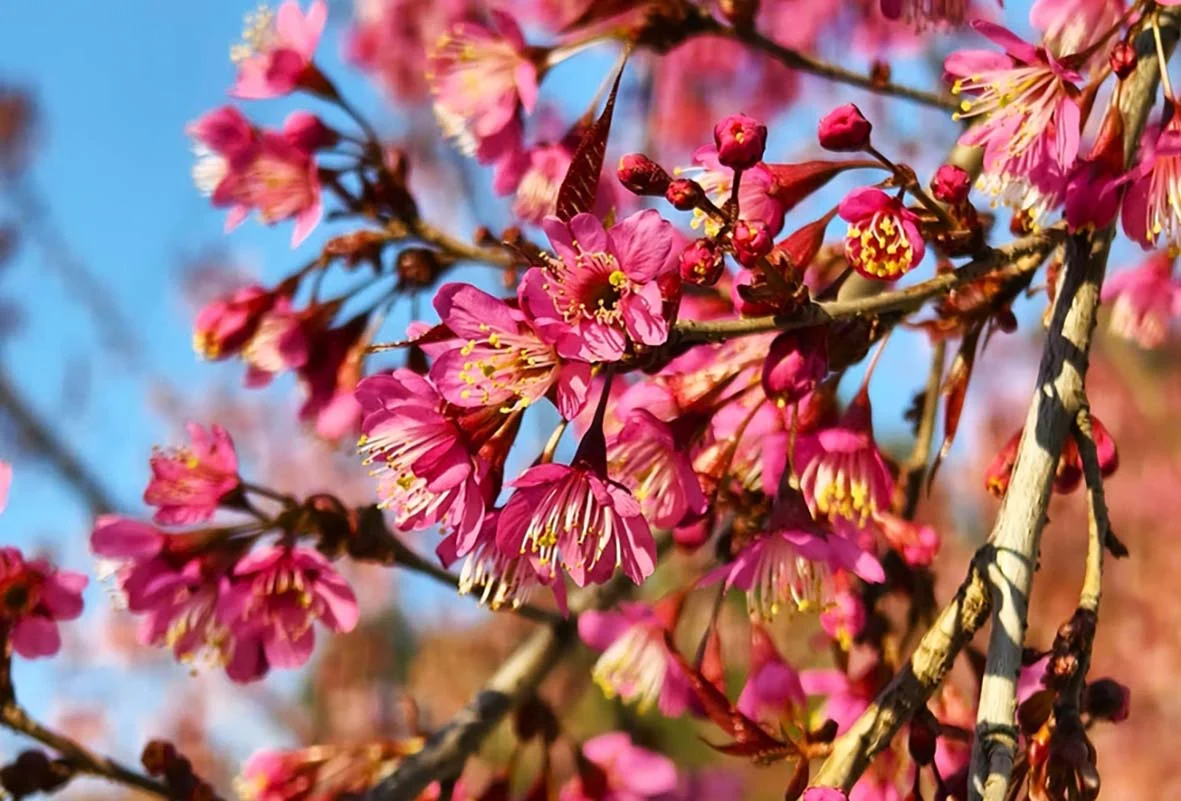 Mùa hoa anh đào thường bắt đầu nở từ cuối tháng 12 và kéo dài đến khoảng tháng 3 năm sau, khi không khí xuân dần lan tỏa khắp núi rừng.