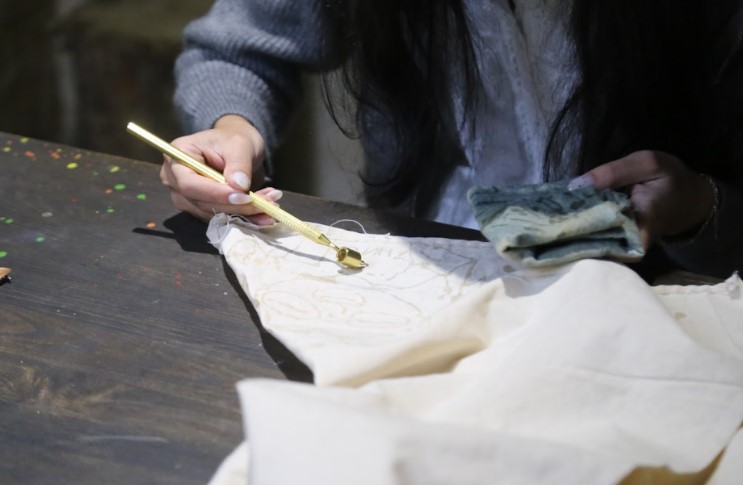 Dụng cụ vẽ sáp ong, nồi nấu sáp và những tấm vải trắng tinh