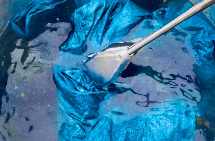 Mỗi lần nhúng - phơi - lại nhúng là một lớp màu, một lớp kiên nhẫn. Ảnh: Thùy Trang