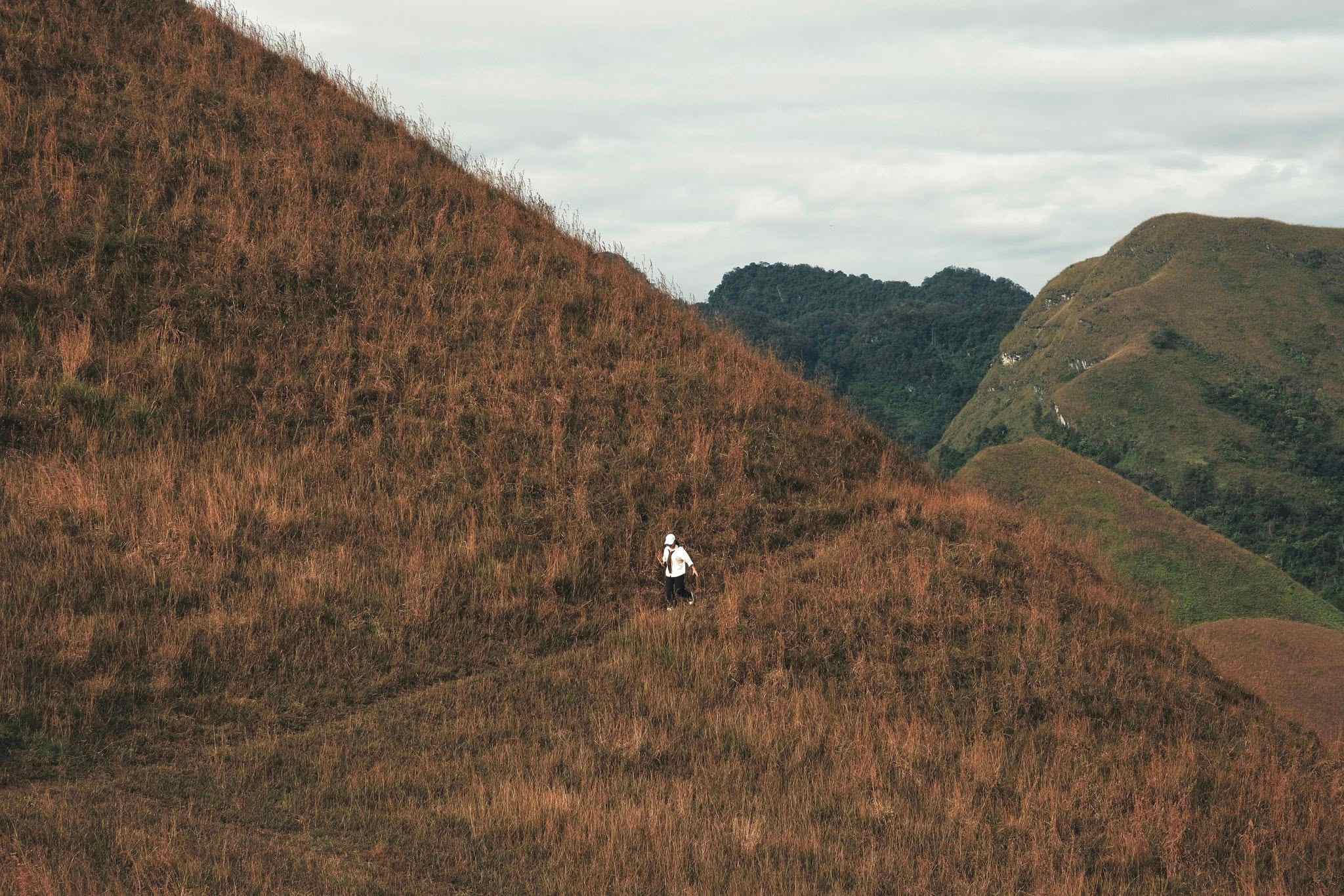 Khi bước vào tháng 10, Ba Quáng chuyển sang mùa cỏ cháy, tạo nên sắc vàng cam trải dài trên khắp các quả đồi.