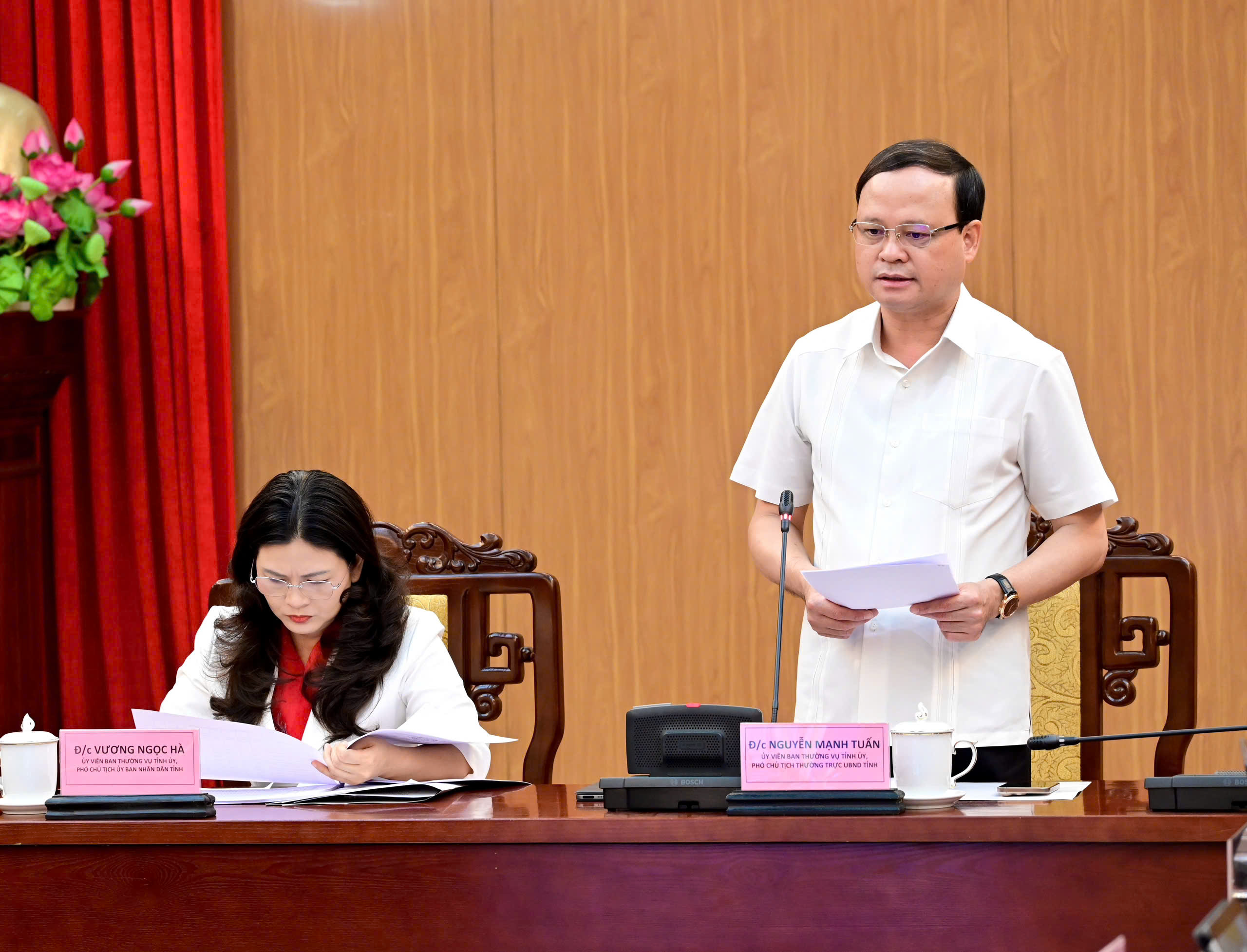 Chủ trì hội nghị có các đồng chí: Nguyễn Mạnh Tuấn, Ủy viên BTV Tỉnh ủy, Phó Chủ tịch Thường trực UBND tỉnh; Vương Ngọc Hà, Ủy viên BTV Tỉnh ủy, Phó Chủ tịch UBND tỉnh. Cùng dự có lãnh đạo các sở, ngành, đơn vị liên quan.
