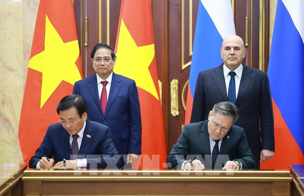 Thủ tướng Phạm Minh Chính và Thủ tướng Liên bang Nga Mikhail Mishustin chứng kiến Lễ ký kết Hiệp định