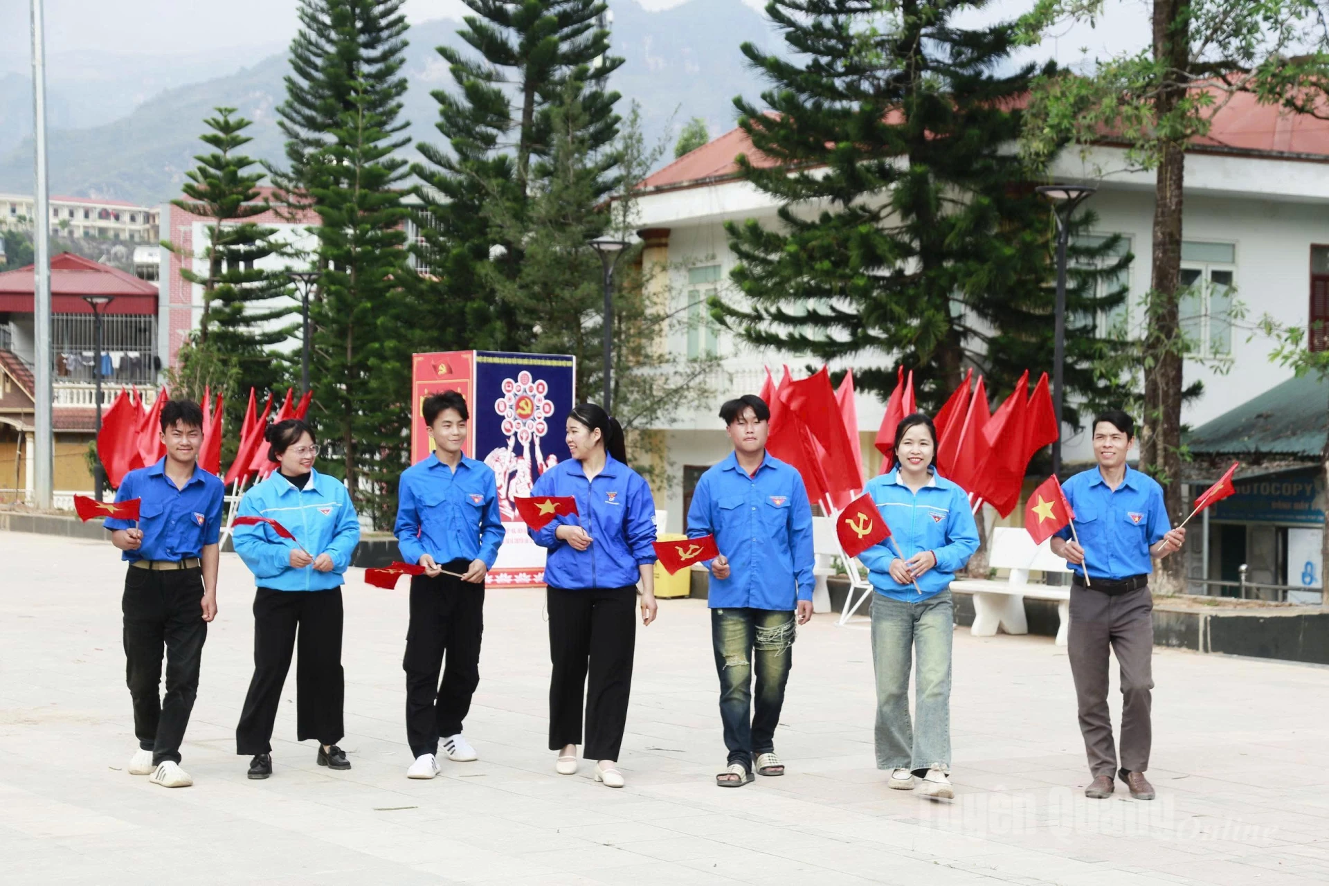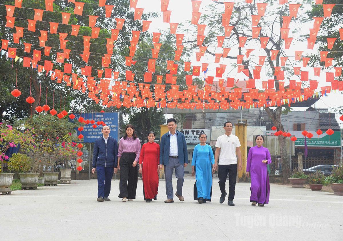 đoạn qua xã Tân Quang chào mừng thành công Đại hội Đảng toàn quốc. Ảnh: Quốc Việt