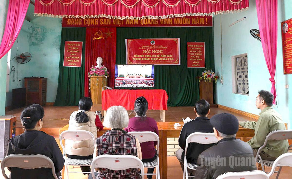 Nhân dân thôn Nông Trường, xã Yên Sơn theo dõi Đại hội đại biểu toàn quốc lần thứ XIV. Ảnh Phạm Hoan