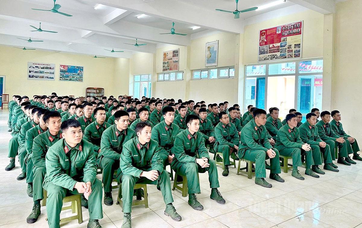 Chiến sỹ Trung đoàn 148 tập trung tại hội trường chuẩn bị theo dõi bế mạc Đại hội. Ảnh: Thuỳ Lê