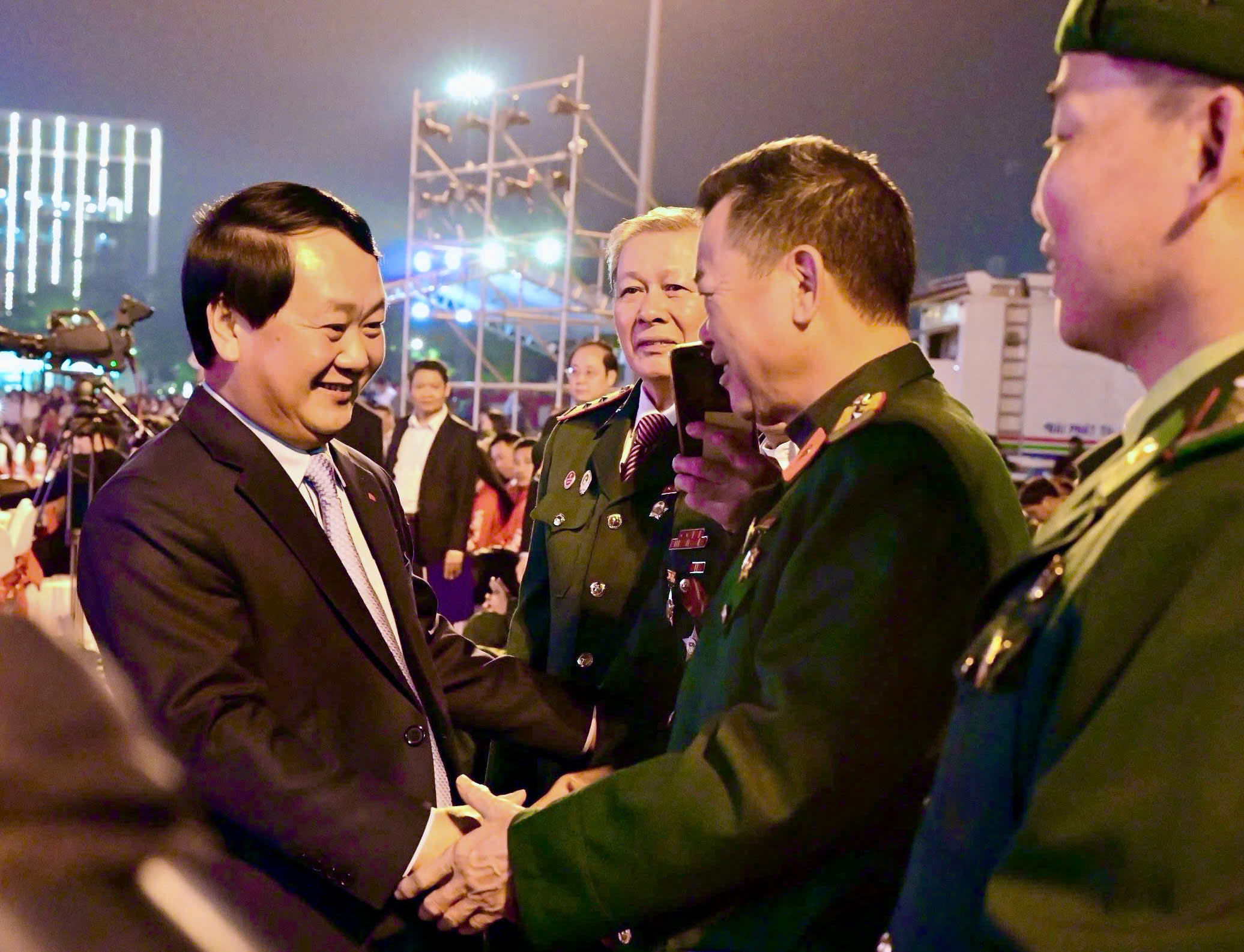 Bí thư Tỉnh ủy Hầu A Lềnh thăm hỏi các đại biểu dự chương trình.
