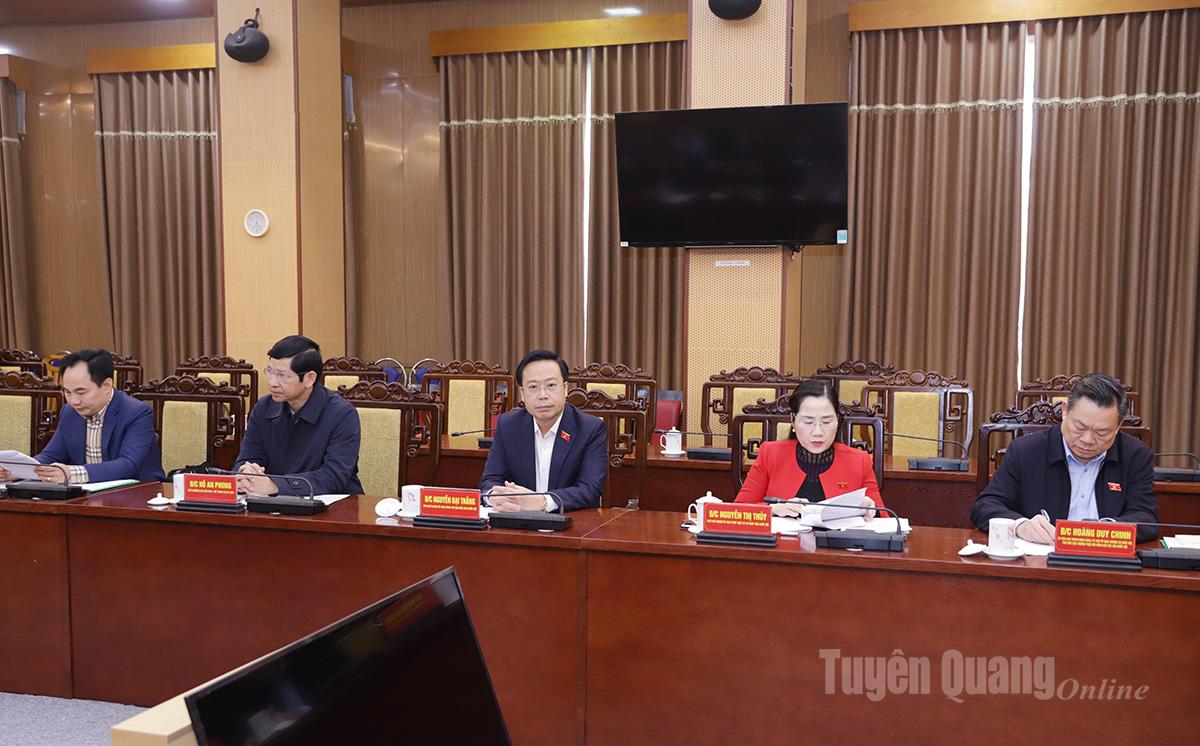 Đón tiếp và làm việc với đoàn công tác, về phía tỉnh Tuyên Quang có các đồng chí: Phan Huy Ngọc, Phó Bí thư Tỉnh ủy, Chủ tịch UBND tỉnh, Chủ tịch Ủy ban bầu cử tỉnh; Ma Thế Hồng, Phó Bí thư Tỉnh ủy, Chủ tịch Ủy ban MTTQ tỉnh; Hầu Minh Lợi, Ủy viên Ban Thường vụ Tỉnh ủy, Phó Chủ tịch Thường trực HĐND tỉnh; Lý Thị Lan, Ủy viên Ban Thường vụ Tỉnh ủy, Trưởng đoàn ĐBQH khóa XV hoạt động chuyên trách tỉnh Tuyên Quang; lãnh đạo các sở, ngành thành viên Ủy ban bầu cử tỉnh…