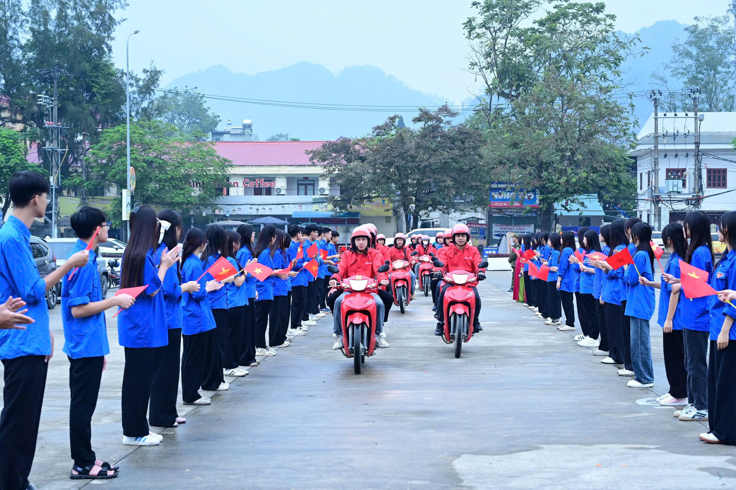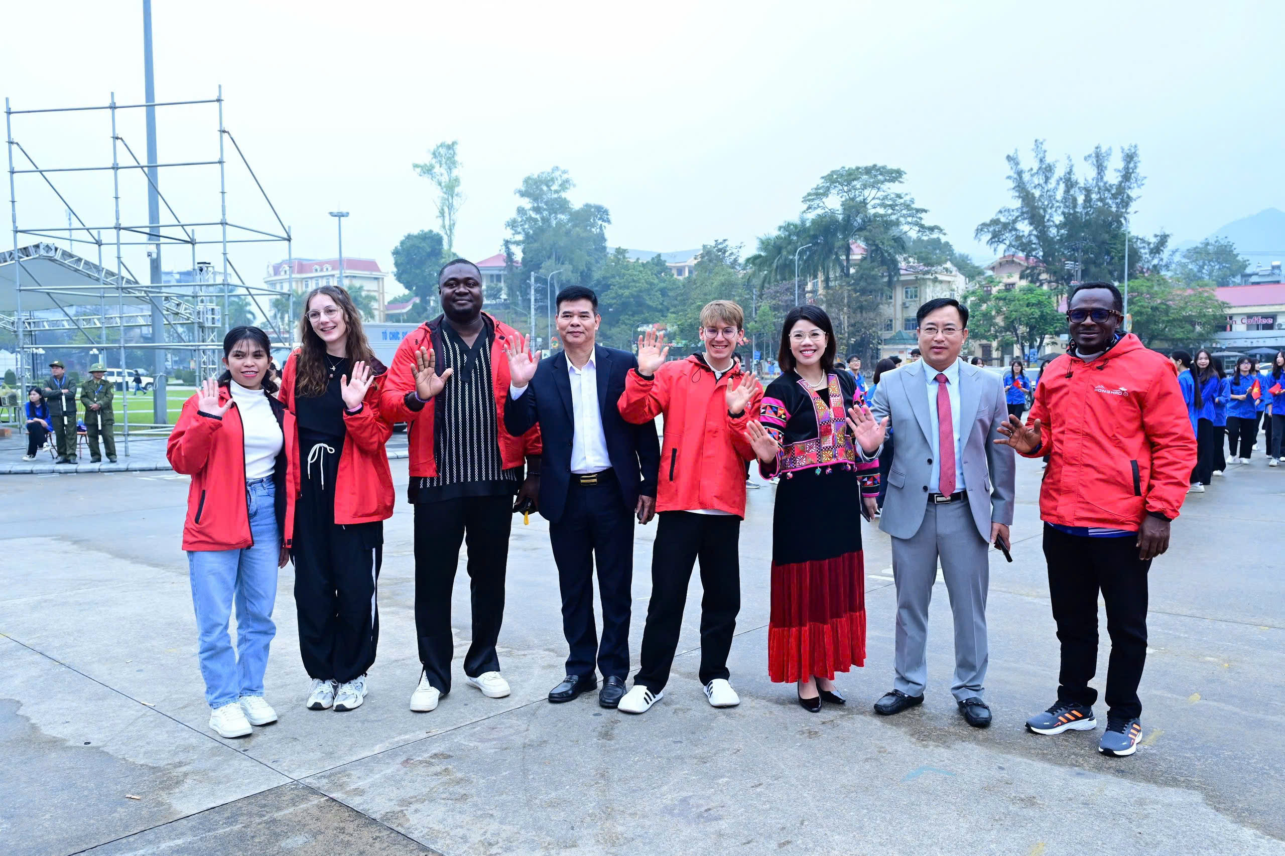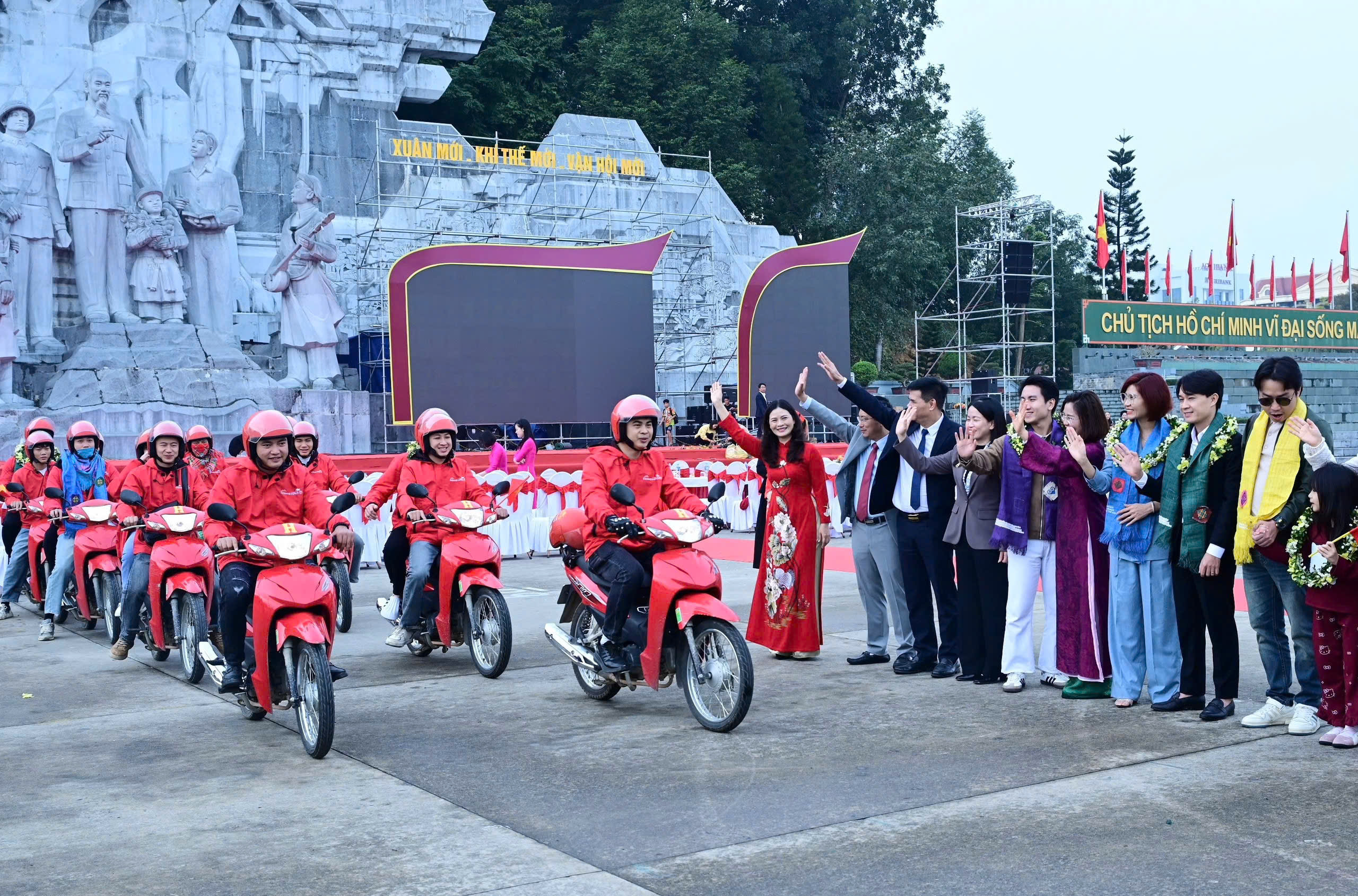 Các đồng chí lãnh đạo và đại biểu tiễn đoàn khách đầu tiên khởi hành khám phá Tuyên Quang.
