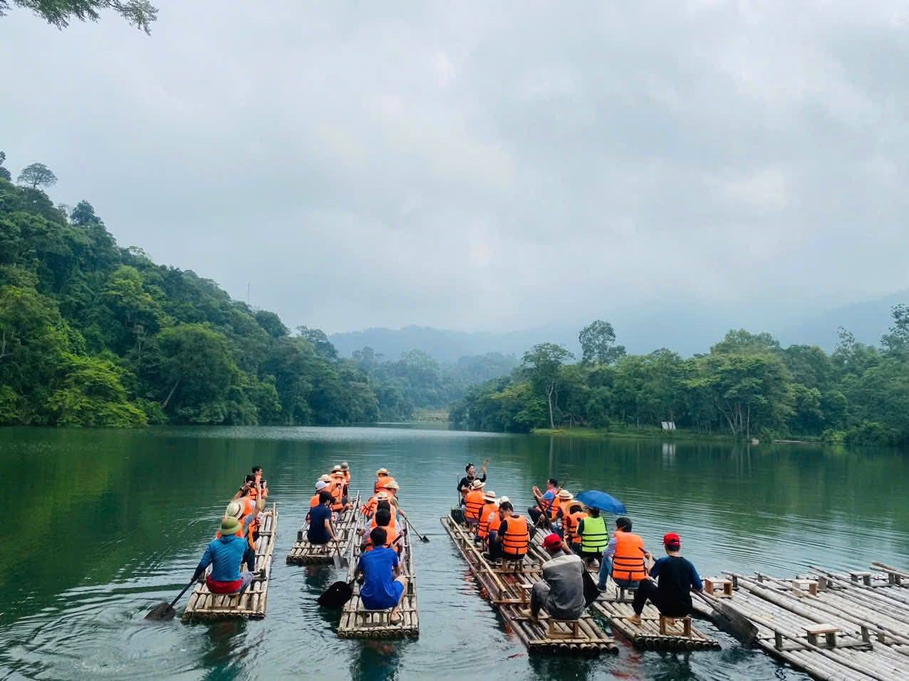 Du khách đi thuyền mảng, nghe hát then giữa lòng hồ Nà Nưa, xã Tân Trào
