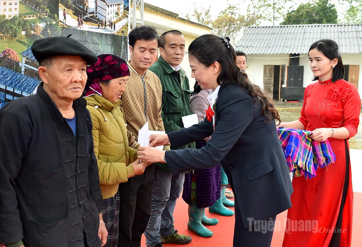 Đồng chí Lê Thị Kim Dung, Phó Bí thư Thường trực Tỉnh ủy tặng quà cho xã Phố Bảng. Ảnh: Thanh Phúc