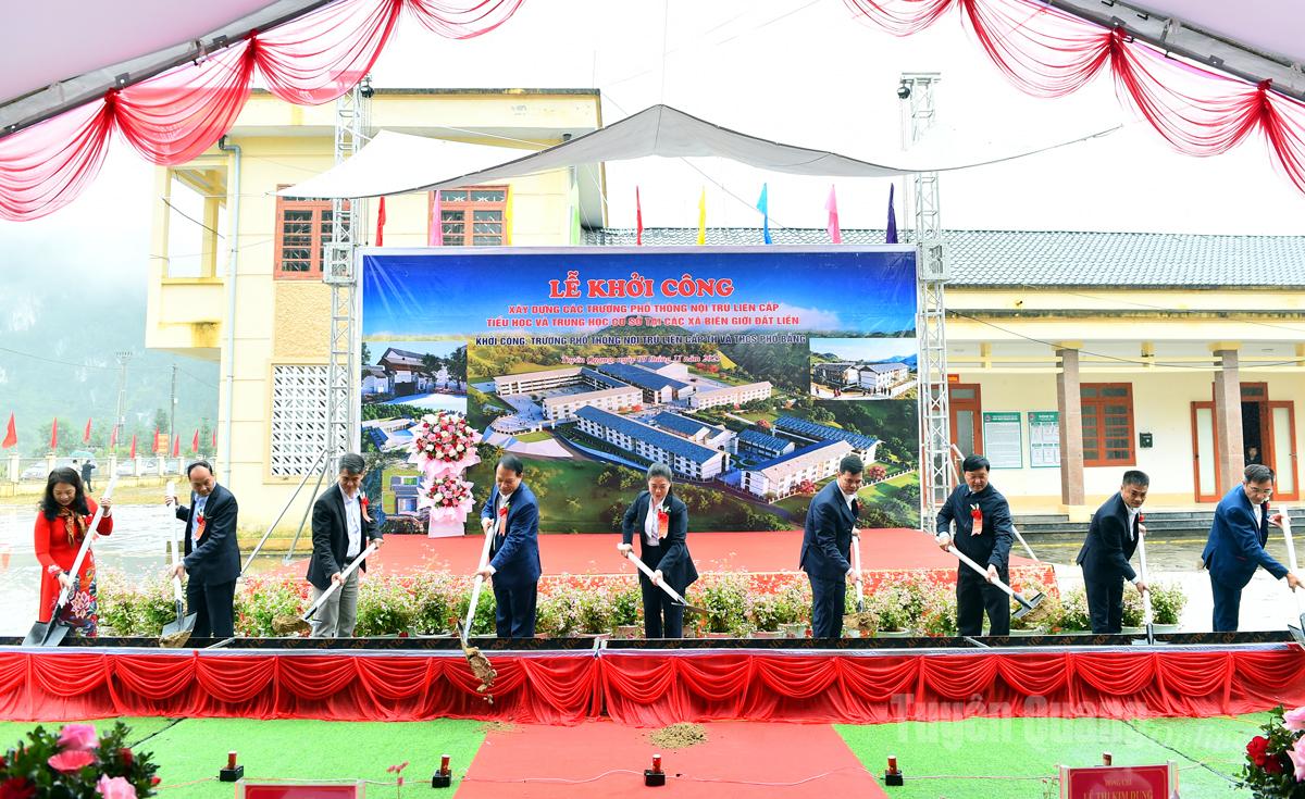 cùng các đại biểu khởi công Trường Phổ thông Nội trú liên cấp Tiểu học và Trung học cơ sở Minh Tân. Ảnh: Văn Nghị
