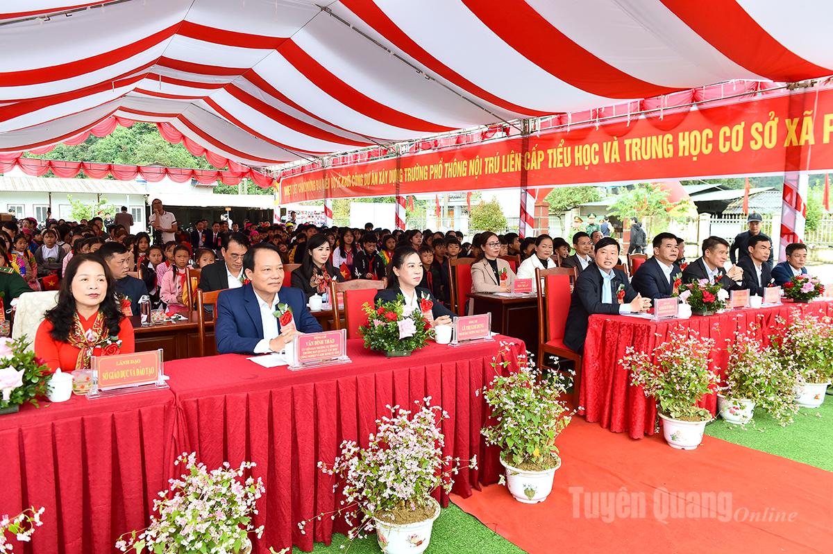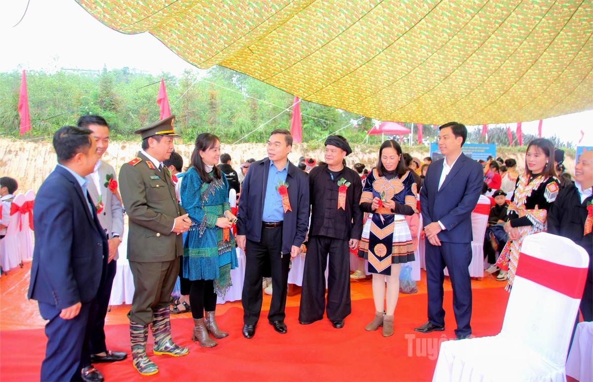 và các đại biểu tới dự Lễ khởi công Trường Phổ thông nội trú liên cấp Tiểu học và THCS Phố Bảng. Ảnh: Thanh Phúc