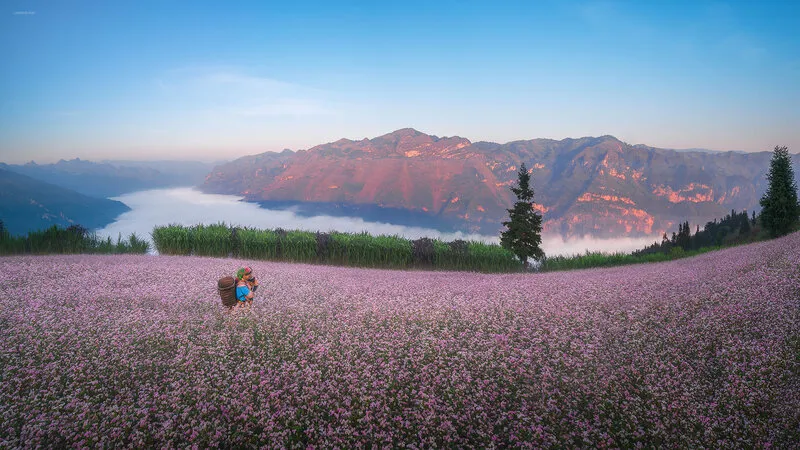 Thảo nguyên Suối Thầu được phủ tím bởi hoa tam giác mạch.